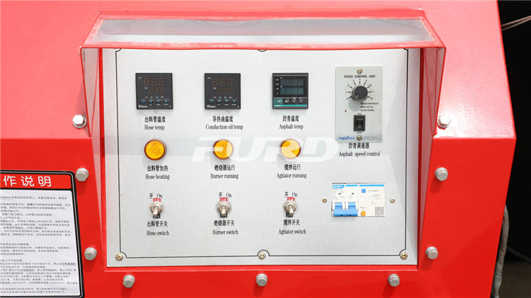 4.全程電子控制,加熱溫度、出料管加熱、燃燒機工作、瀝青泵工作、燃料狀態(tài)、故障報警燈均為適時顯示,實現(xiàn)電子自動控制一體化。