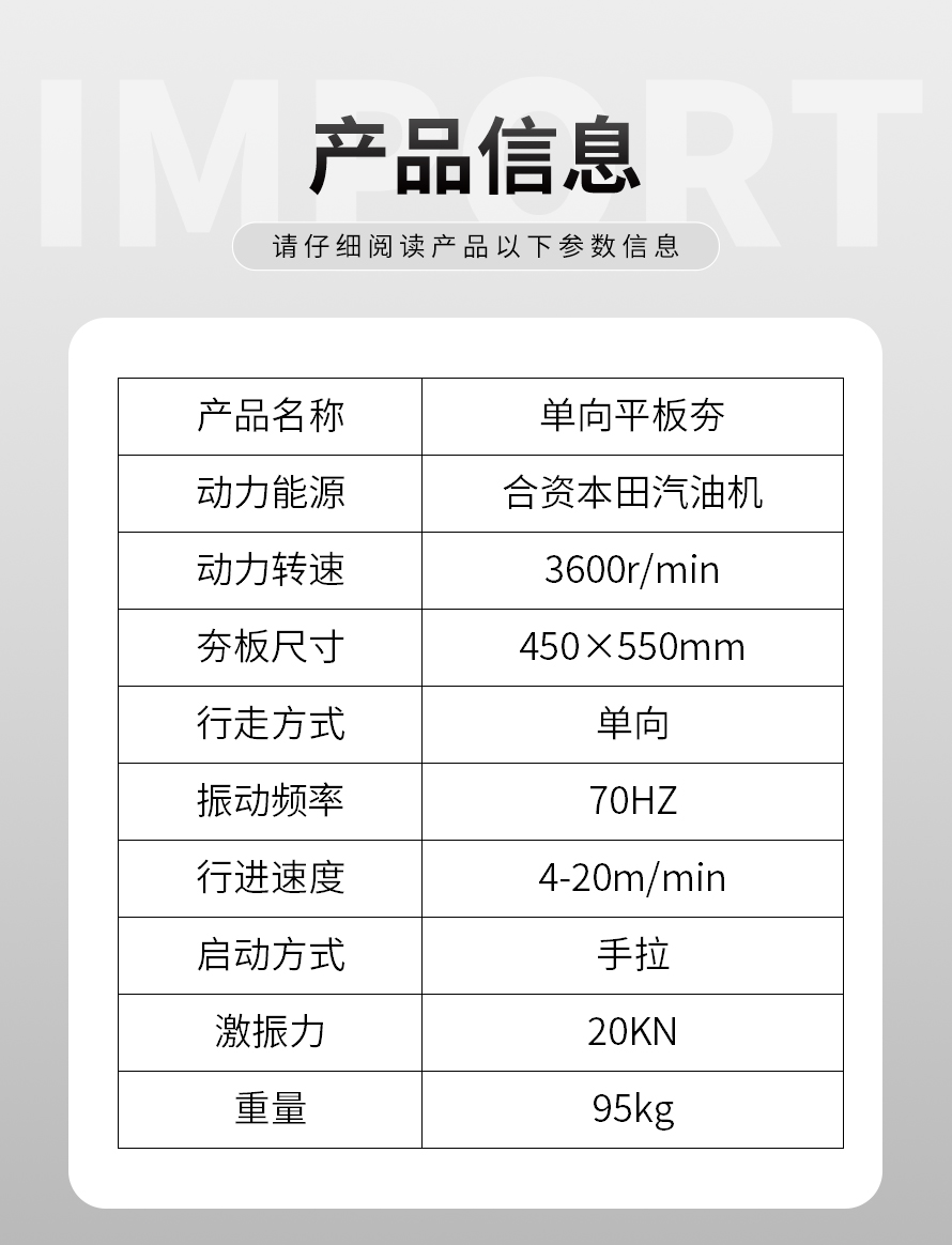 產(chǎn)品名稱:FPB-20單向平板夯
