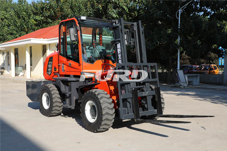 5.越野叉車發(fā)動機(jī)功率大,采用全輪驅(qū)動和越野輪胎。